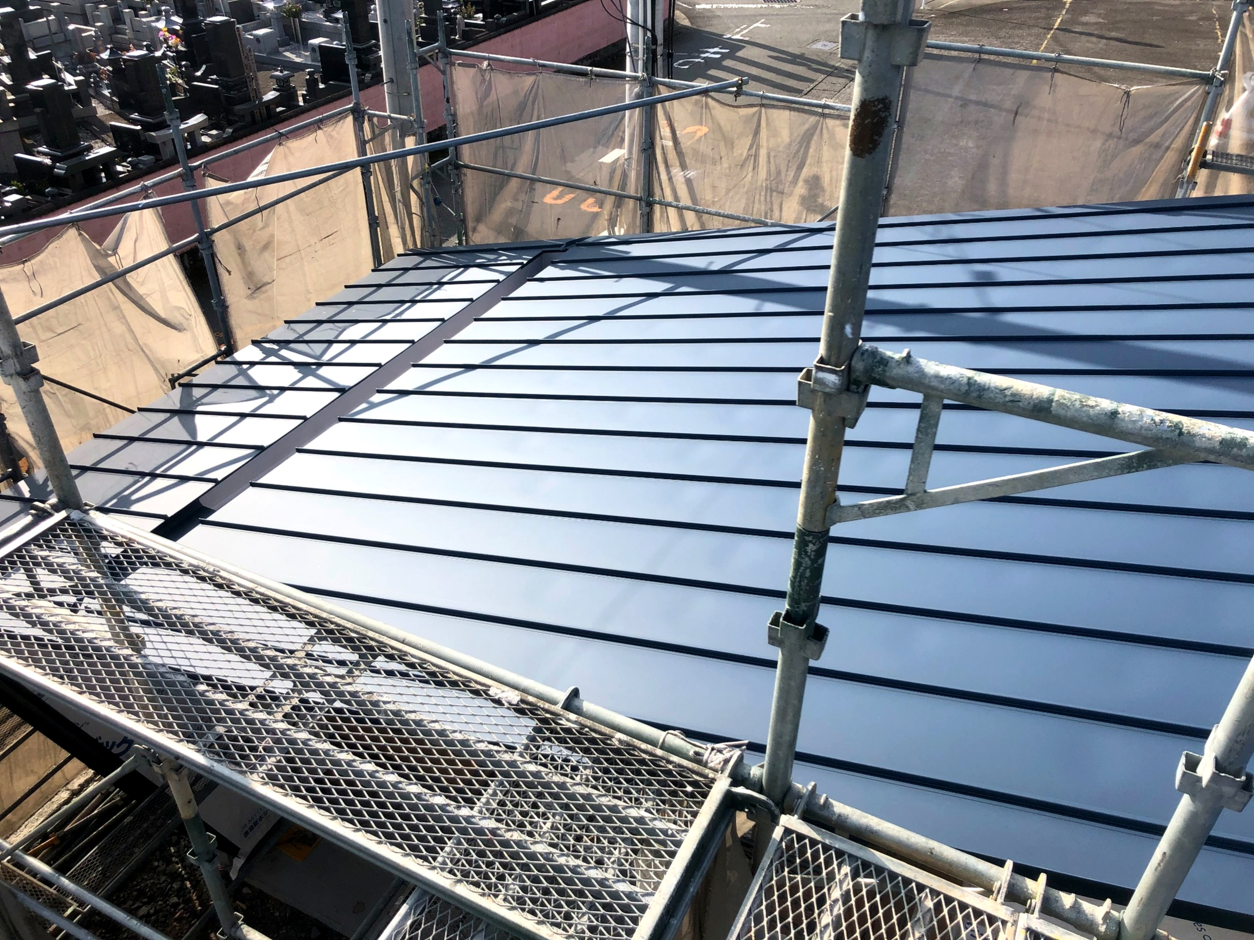 最終的には屋根の途中に内樋を設ける案を採用しました。屋根の途中に溝を付けるわけですから、躯体に水が流れる事が無いようにFRP塗装を行い、板金加工も