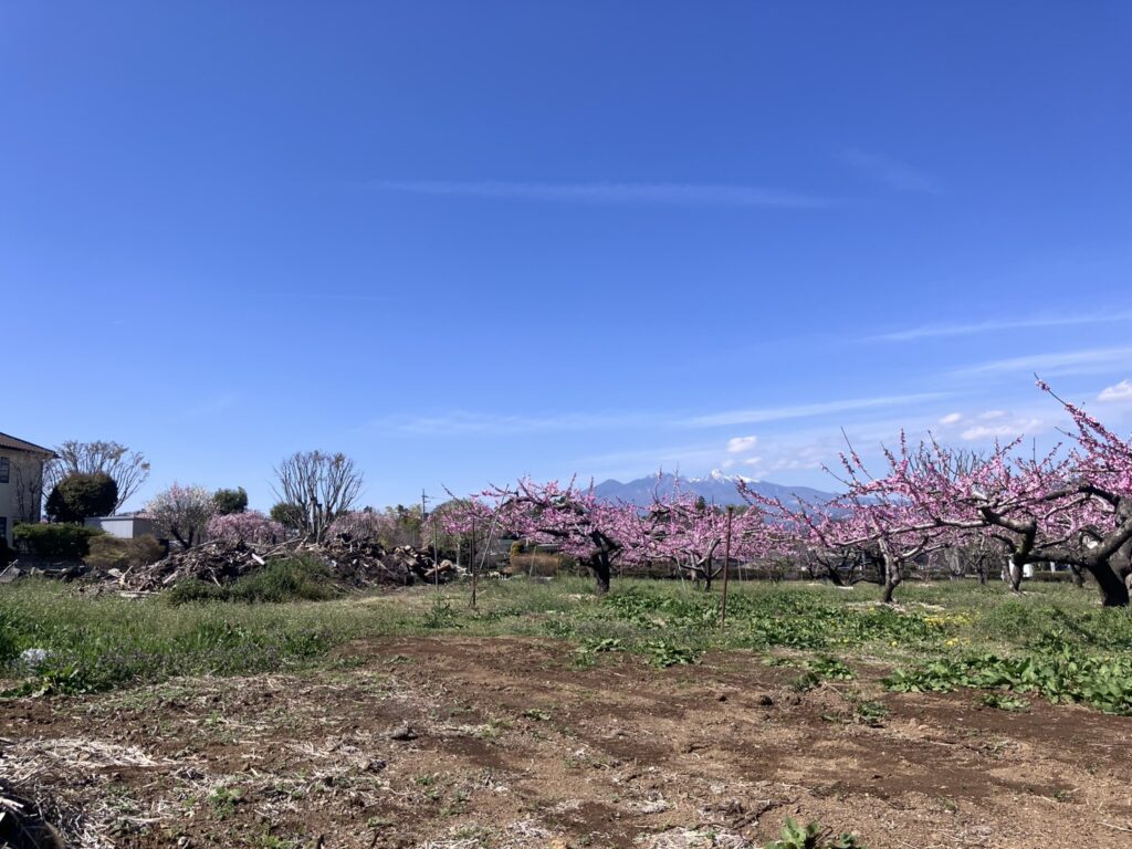 らんまんと咲く桃の花。今度の計画地は山梨県です。