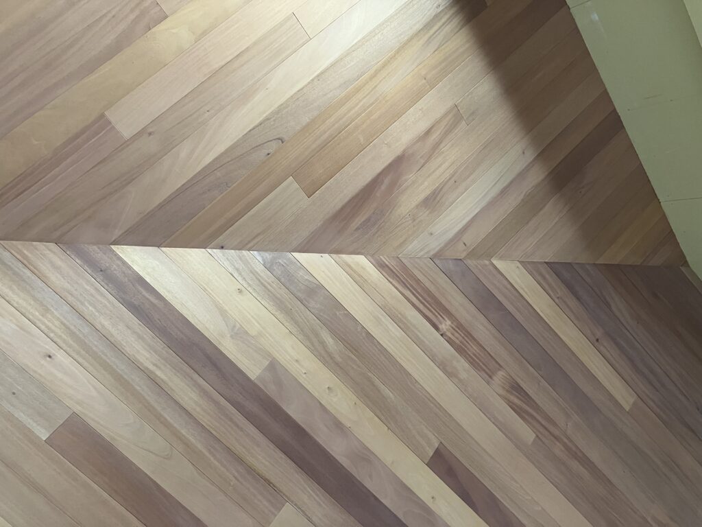 天井と天井の境は見切り部材を設けずに、2枚の羽目板がぴったり合わさる“留め加工”