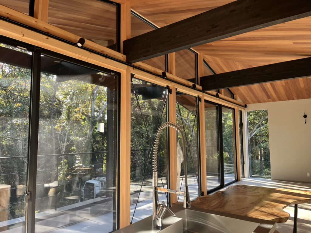 隣地が森のため、カーテンいらずの大開口を設け、どこにいても森林浴が楽しめます。