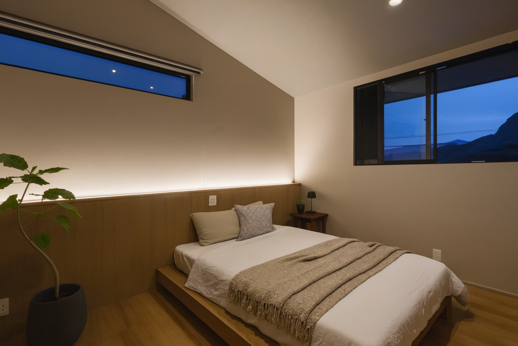 。 TENアーキテクツの寝室設計哲学 光のコントロール 朝は自然光がやさしく差し込み、夜は静けさに包まれる。