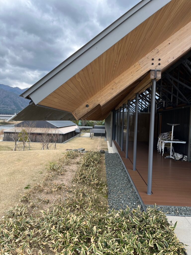 大屋根のスケール感や構造体の見せ方、軒先の厚みや素材の継ぎ目に至るまで、