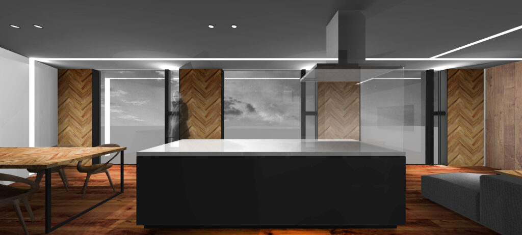 2階LDK案は基本的には大空間(無柱空間)となりますので2階に配置することで、構造的負担(梁のサイズや直下率等)を比較的減少させることが可能です。