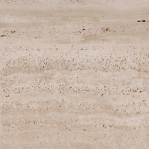 平行に堆積した層が縞状に入り、そこに小さな穴(細孔)がランダムに入る点が特徴的です。