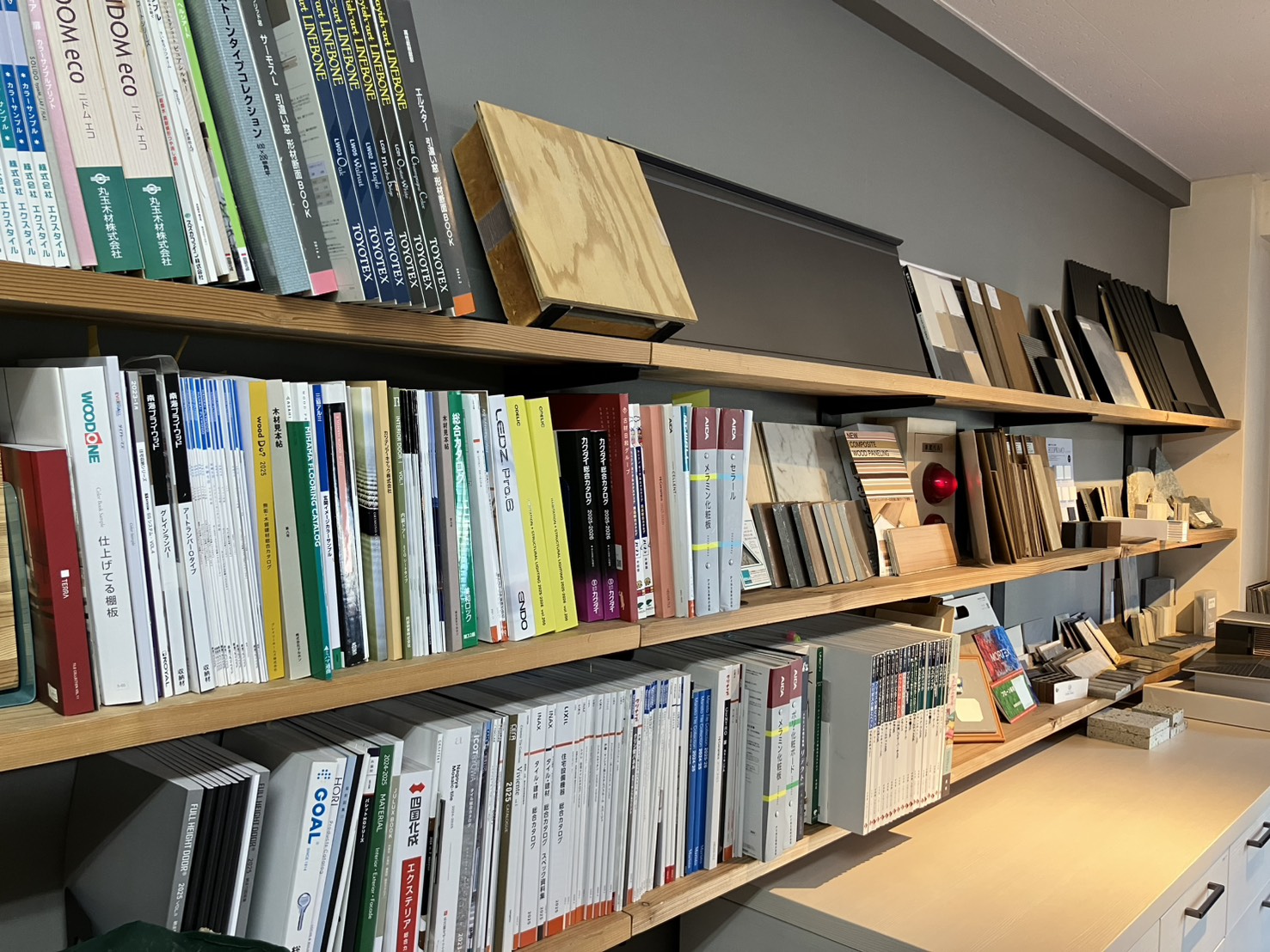 年末に、事務所の本棚に並んでいた大量のカタログやサンプルを整理しました。
