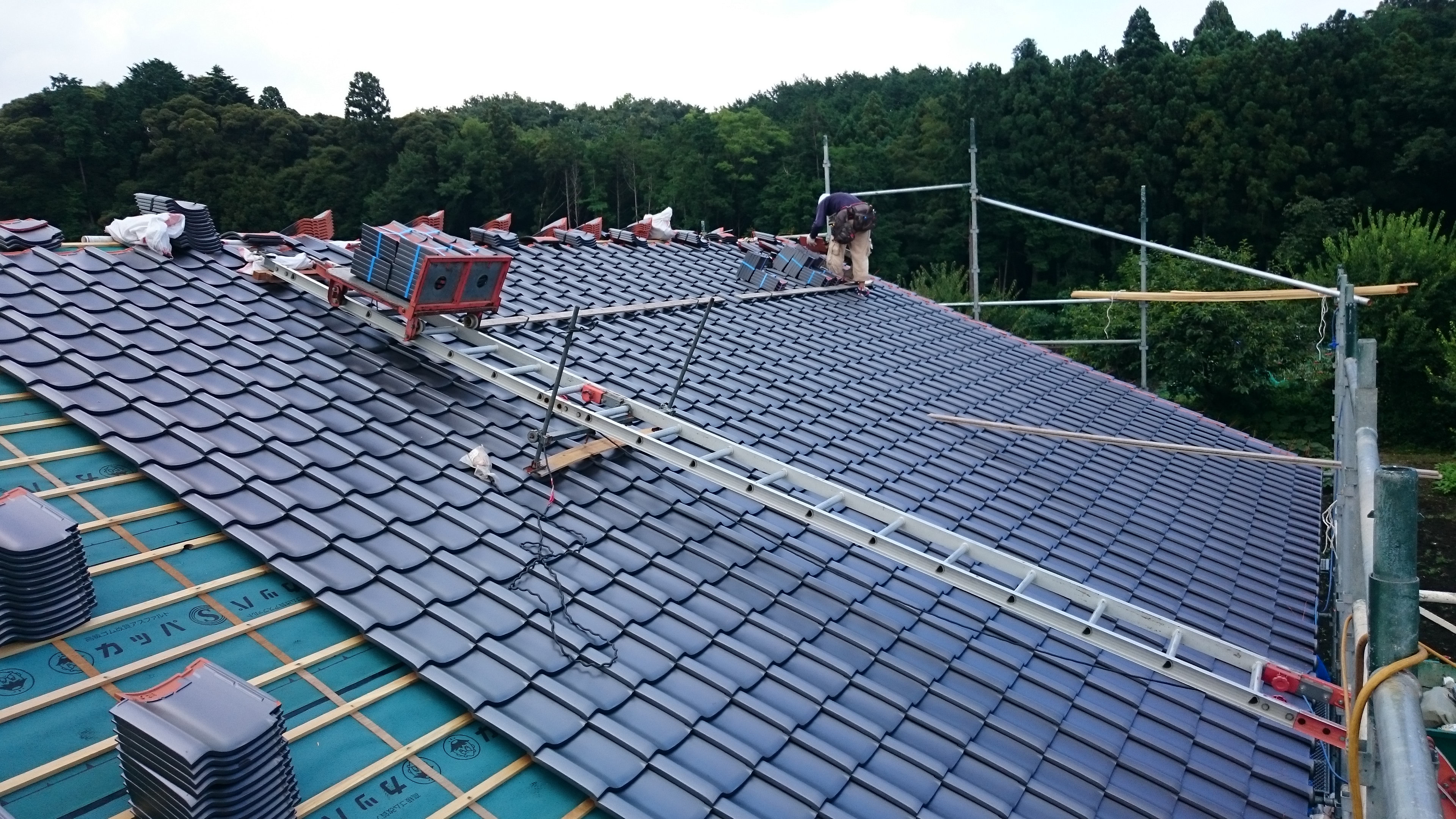 ということで、シンプルな切妻屋根に、瓦が葺かれました。